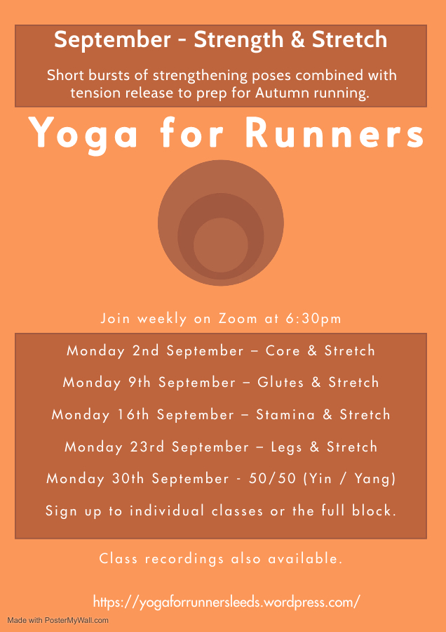 As Autumn approaches our Monday evening Zoom classes are going to include a little more strength and stability, while still retaining lots of stretch and release. As mid-week racing has wound down and things are possibly a little less hectic and the prospect of the XC season is just around the corner, it’s a good time to add more strength work back into our sessions.
