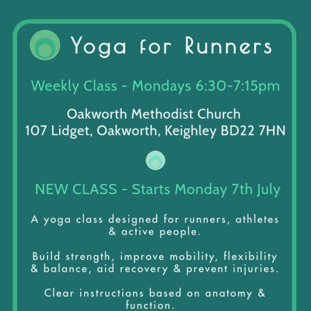 We are starting a regular Yoga for Runners session in Oakworth at the Methodist Church.