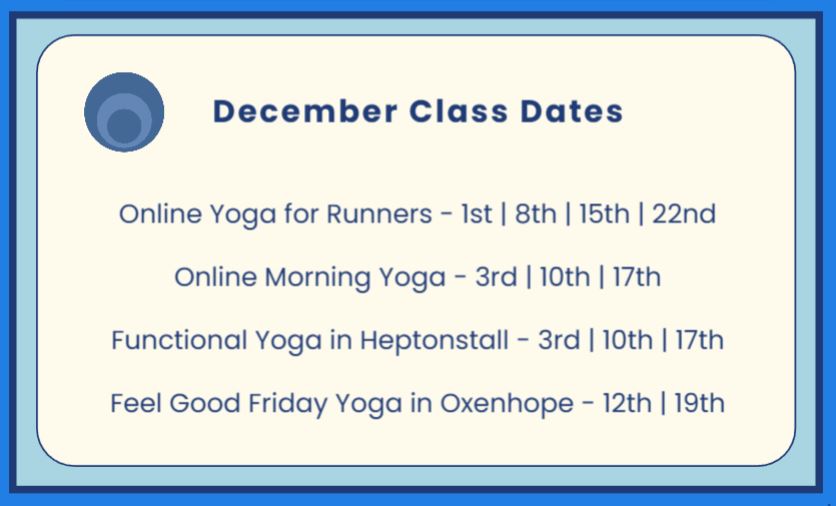 There’ll be the usual monthly recorded stretch & recovery session and I’ll try to pop in a couple of extra recorded classes on the shop, to offer a festive retreat if you need it.